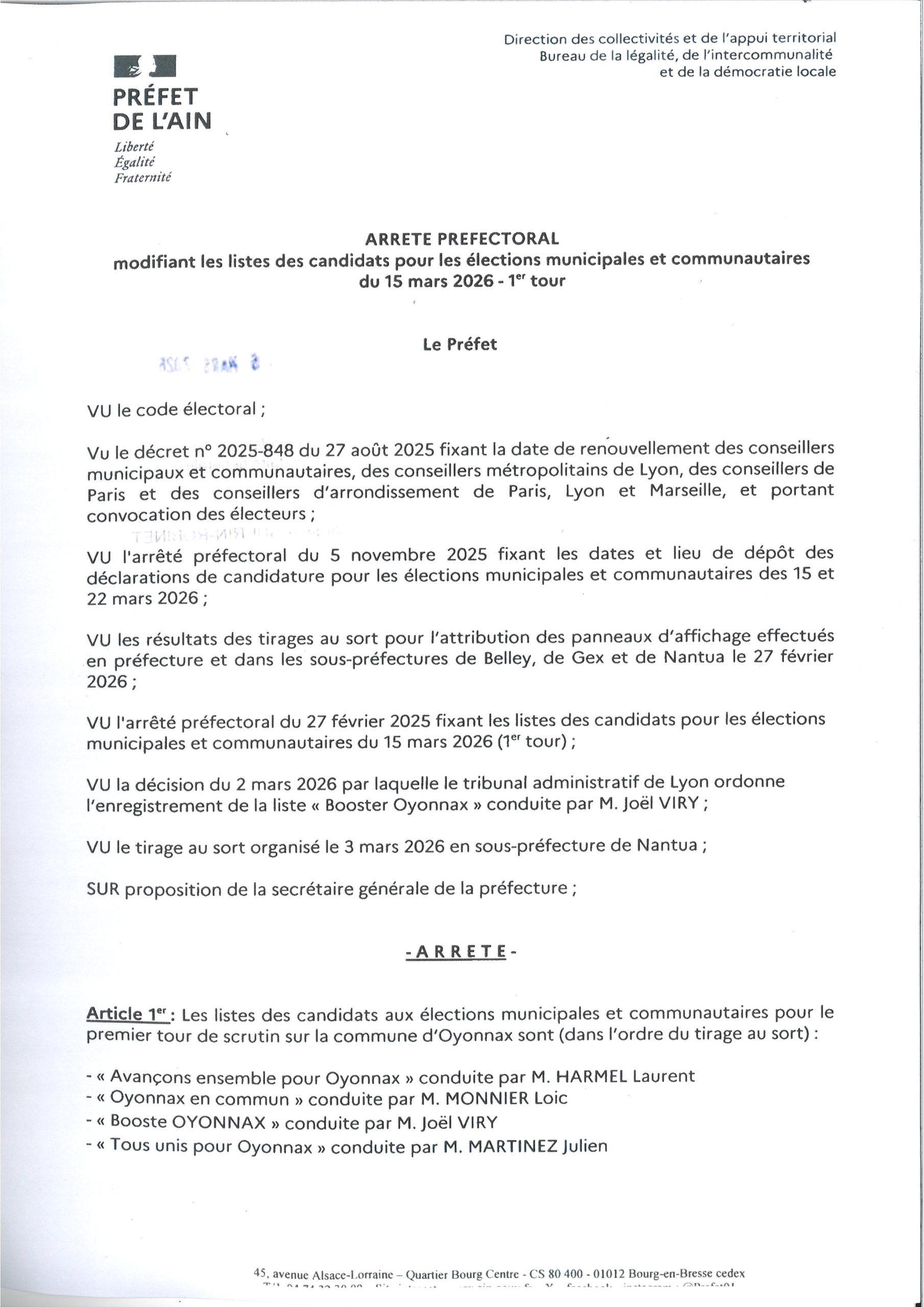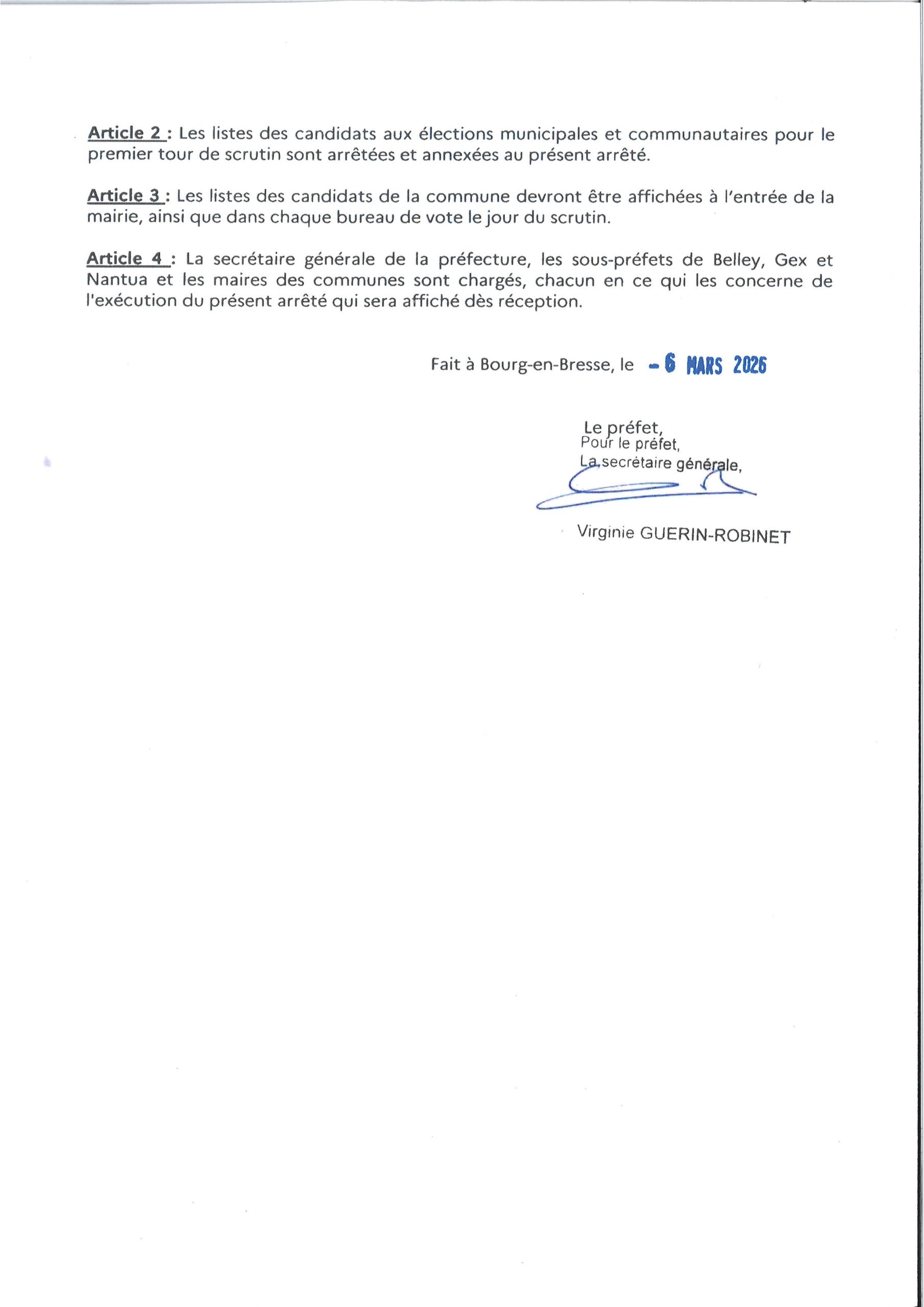 Affichage arrêtés de la Préfecture :